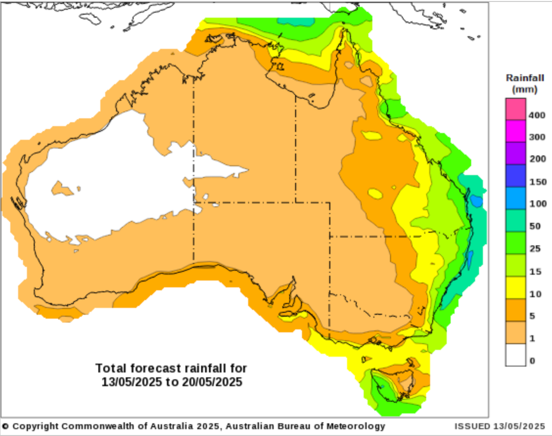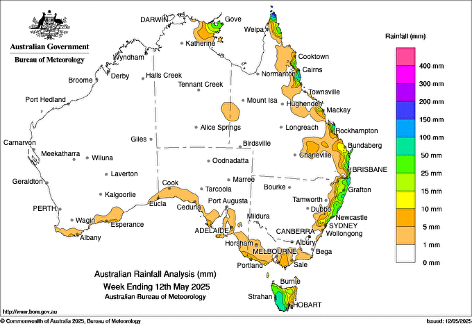 Weekly rainfall to 12 May 2025