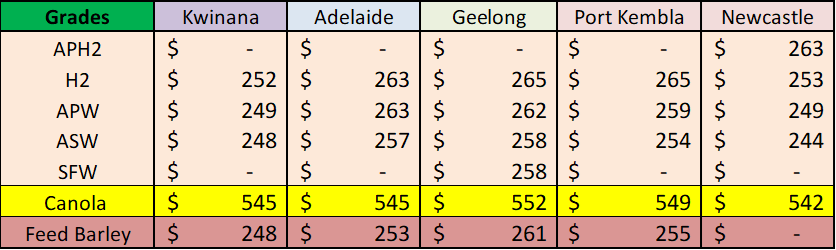 Australian domestic markets were softer last week ahead of forecast rain across South East Australia. The local markets have seen some selling following the late May rain in Southern New South Wales (NSW) and improving weather outlook in Victoria (VIC) and South Australia (SA) and we expect this to accelerate into the new financial year in July. Candidly lack lustre global demand and favourable Northern Hemisphere production forecasts should weigh on Australia’s grain exports in the July-September quarter. Australian milling wheat is losing ground to competitive offers from Black Sea suppliers. A large carry out will develop if exports do not pick up before the end of September.