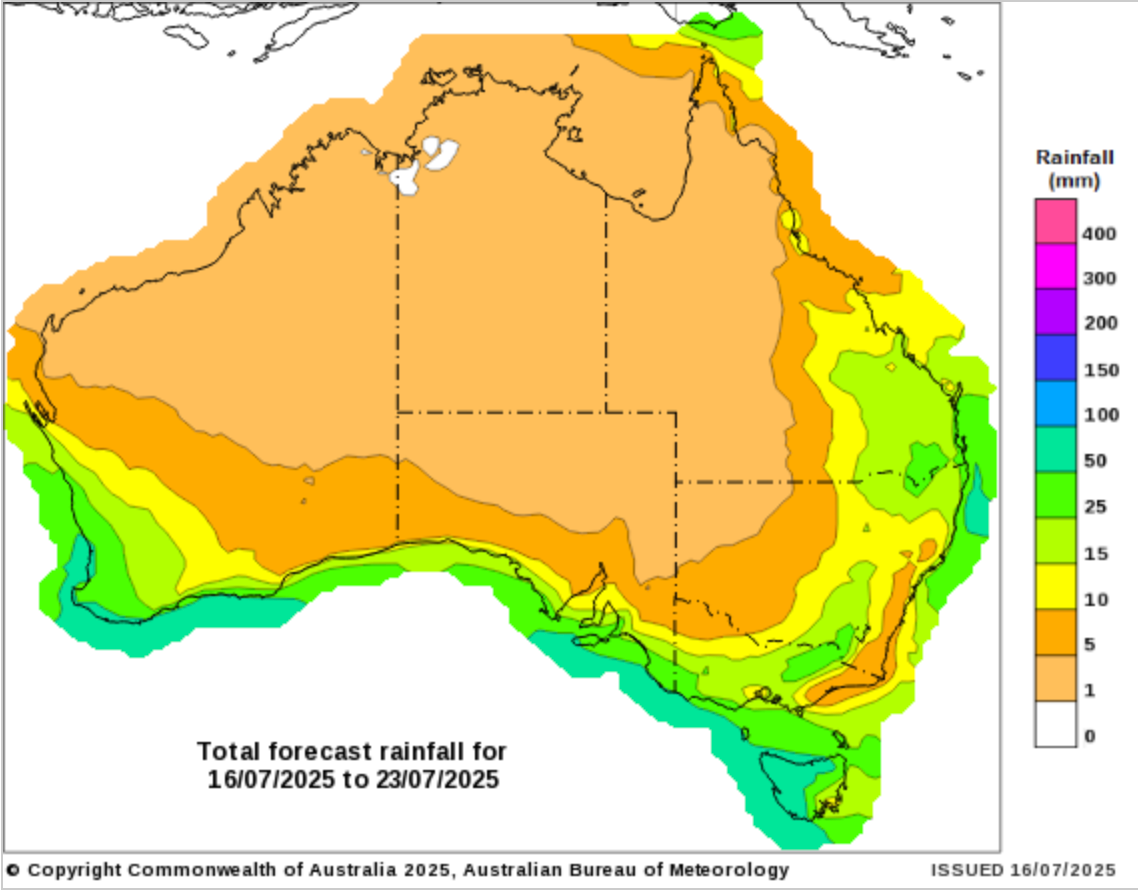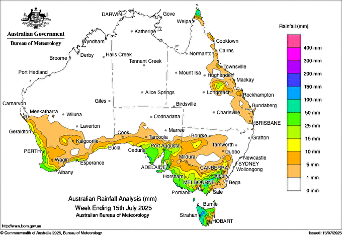 Weekly rainfall to 15 July 2025