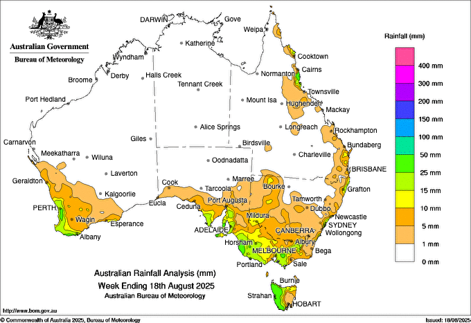 Australia’s Bureau of Meteorology released its latest long-range weather forecast last week with above average rainfall predicted for eastern Australia for September to December. The latest forecasts offer more rain for Western Australia (WA), Southern QLD and possibly Northern NSW in the next week but Southeast Australia is expected to see limited rain in the next 7-10 days were crops are already two to four weeks later than normal in their development.