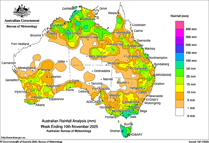 Australia exported 1.92 million metric tonne (MMT) of wheat in September, modestly higher than the 1.86MMT in August. This lifted Australia’s FY 25 wheat exports to 23.5MMT. Indonesia was the largest destination with 4.5MMT followed by the Philippines with 3.5MMT, then Thailand and Vietnam both taking around 1.6MMT. South Korea was next with 1.5MMT, then Japan with 1.15MMt and then China and Malaysia with a tad over 1.0MMT. China’s exports tumbled from 3.75MMT in 23/24 to 1.05MMT in 24/25. Exports to Africa nearly tripled year on year to 2.37MMT. Most of this was when Russia’s export quota came into effect in Q2 and Q3 2025.
