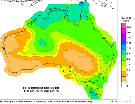 Unsettled weather is slowing Australia’s harvest pace although it hasn’t been wet enough to cause any significant quality concerns. Patchy storms delivered heavy rains in parts of Southern QLD and Northern New South Wales (NSW), but they weren’t widespread. Some areas in Western NSW recorded upwards of 60mm while areas in Victoria (VIC) were around 10-15mm. Yields have been generally coming in at or above expectations. Barley yields of 4-5 metric tonne per hectare (MT/ha) have been the norm with some farmers achieving better. WA wheat yields have generally been 2.5 MT/ha or better with early harvest to the east higher than last year. Premiums for high quality milling wheat are climbing with wheat protein levels generally coming in 0.5 to 1.0-pc below expectations. Most of the wheat deliveries are making APW and ASW, and Noodle wheat with smaller volumes of AH11.5. Little wheat has been coming in above protein so far. Farmer selling remains slow and reserves with many opting to hold back in hope of higher prices. Wheat harvest in QLD and Northern NSW is 80-90% complete. Wheat harvesting in the western areas of Northern NSW is seen as ~50% while the eastern areas are still in the early stages. Harvest is just starting in the western parts of the NSW Central West while canola and barley is well-underway. It’s still very early in the WA, VIC and SA harvest as can be seen by the BHC deliveries. It is also still relatively cool which will be good for yield but means this harvest will have a long tail.